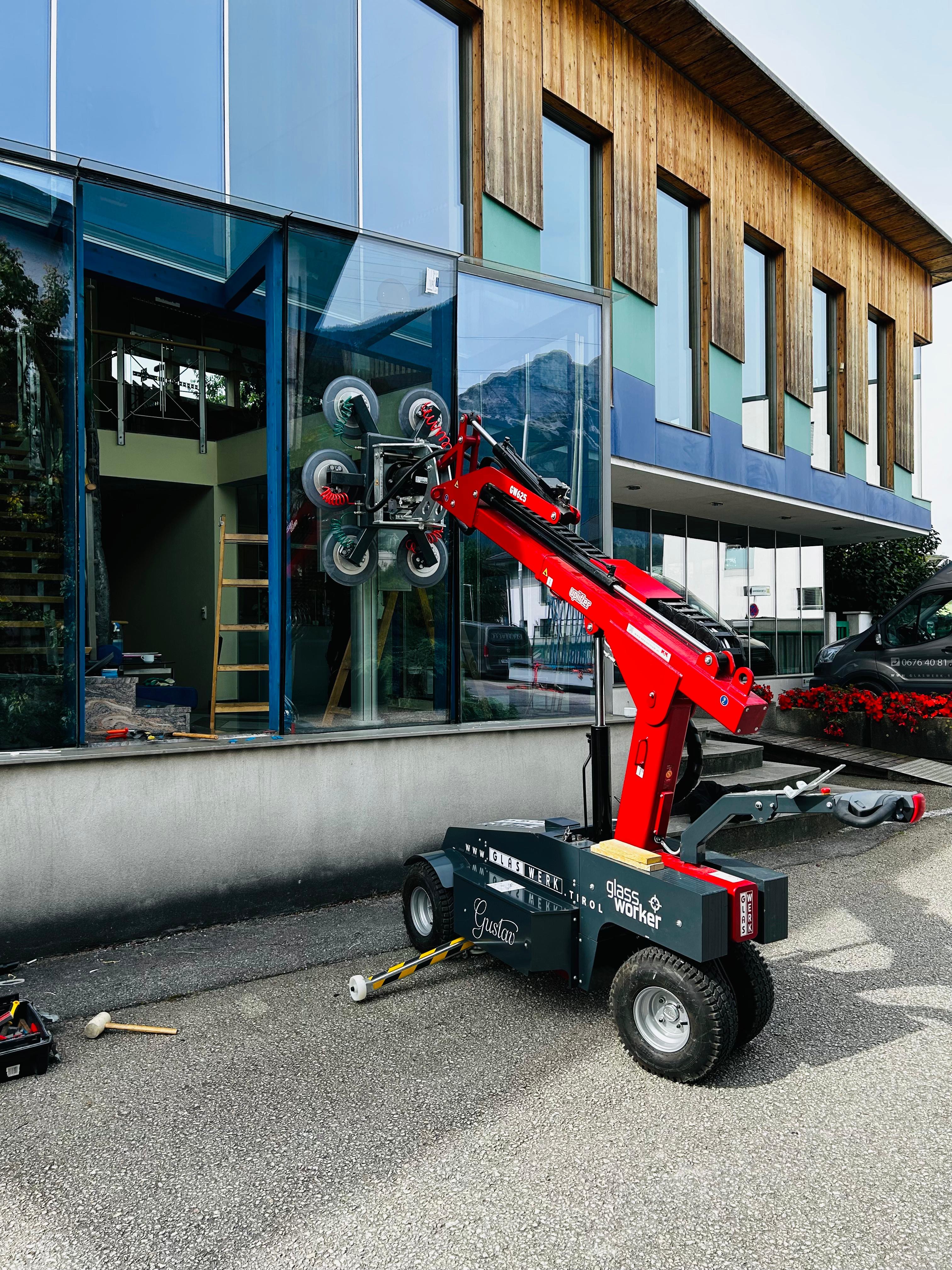 #Glasmontage #Minikran #Vakuumheber #Fassadenbau #Glasbau #Kranmieten #Uplifter