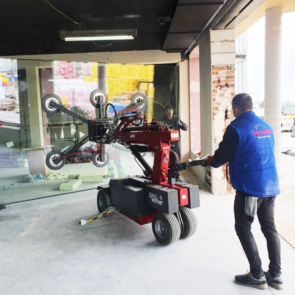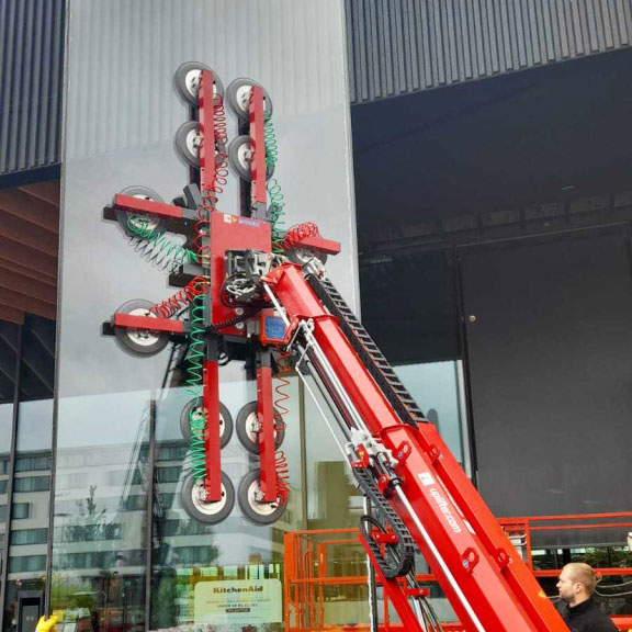 Minikrane und Vakuumheber für Fassaden, Hallenbau oder Glasmontage – bundesweite Lieferung inklusive Bediener.