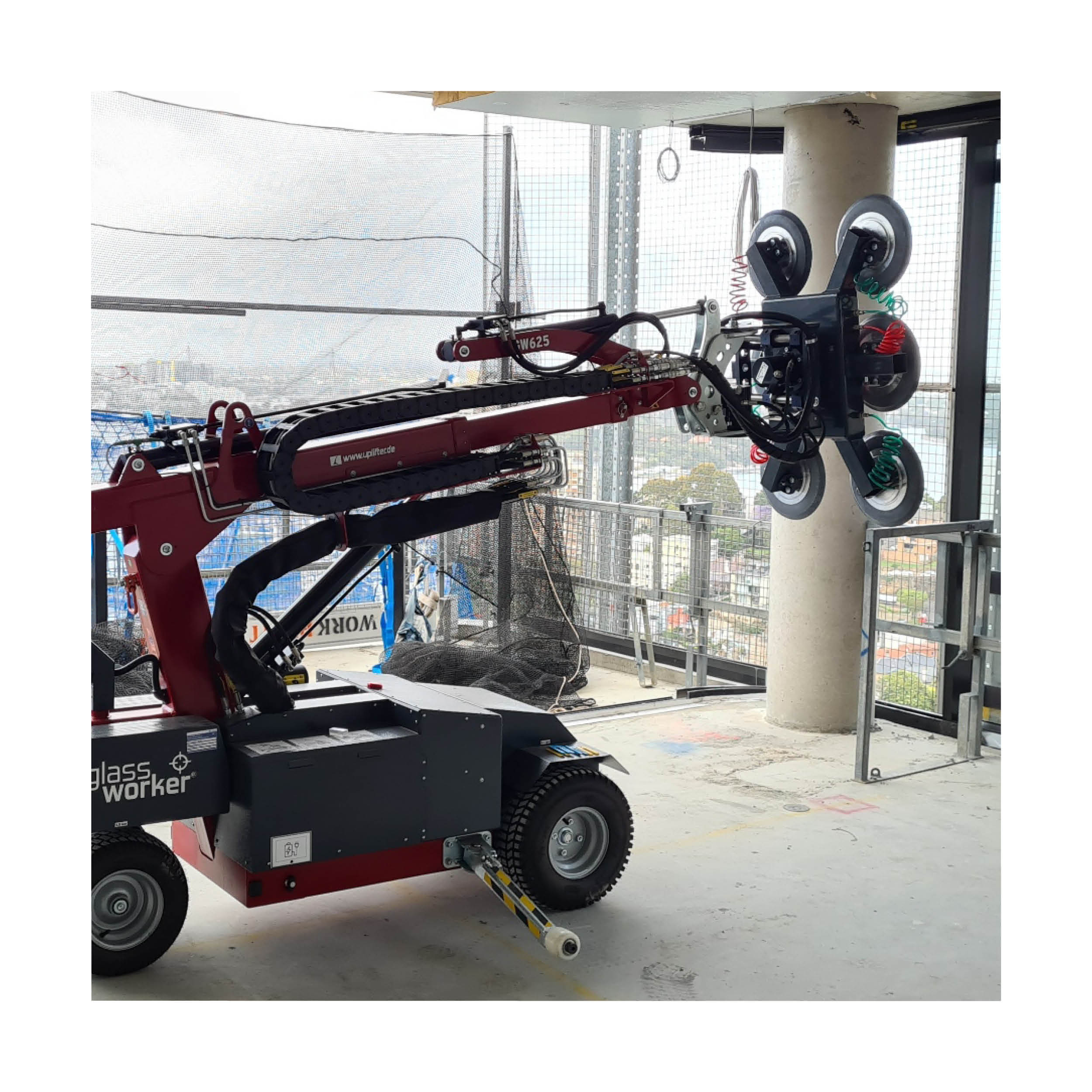 Zunächst einmal ist zu beachten, wie schwer die Glasscheiben sind, die es zu transportieren gilt. Die Hebezeuge von Uplifter gibt es mit verschiedenen Tragfähigkeiten. Es ist wichtig sicherzustellen, dass das Hebezeug genügend Kapazität hat, um Ihre Anforderungen zu erfüllen, ohne dabei überlastet zu sein. Darüber hinaus ist zu prüfen: Wie hoch muss das Glas gehoben werden und kann das Hebezeug dies leisten? Außerdem sollten Sie die Raum- und Bodenverhältnisse am Einsatzort berücksichtigen.