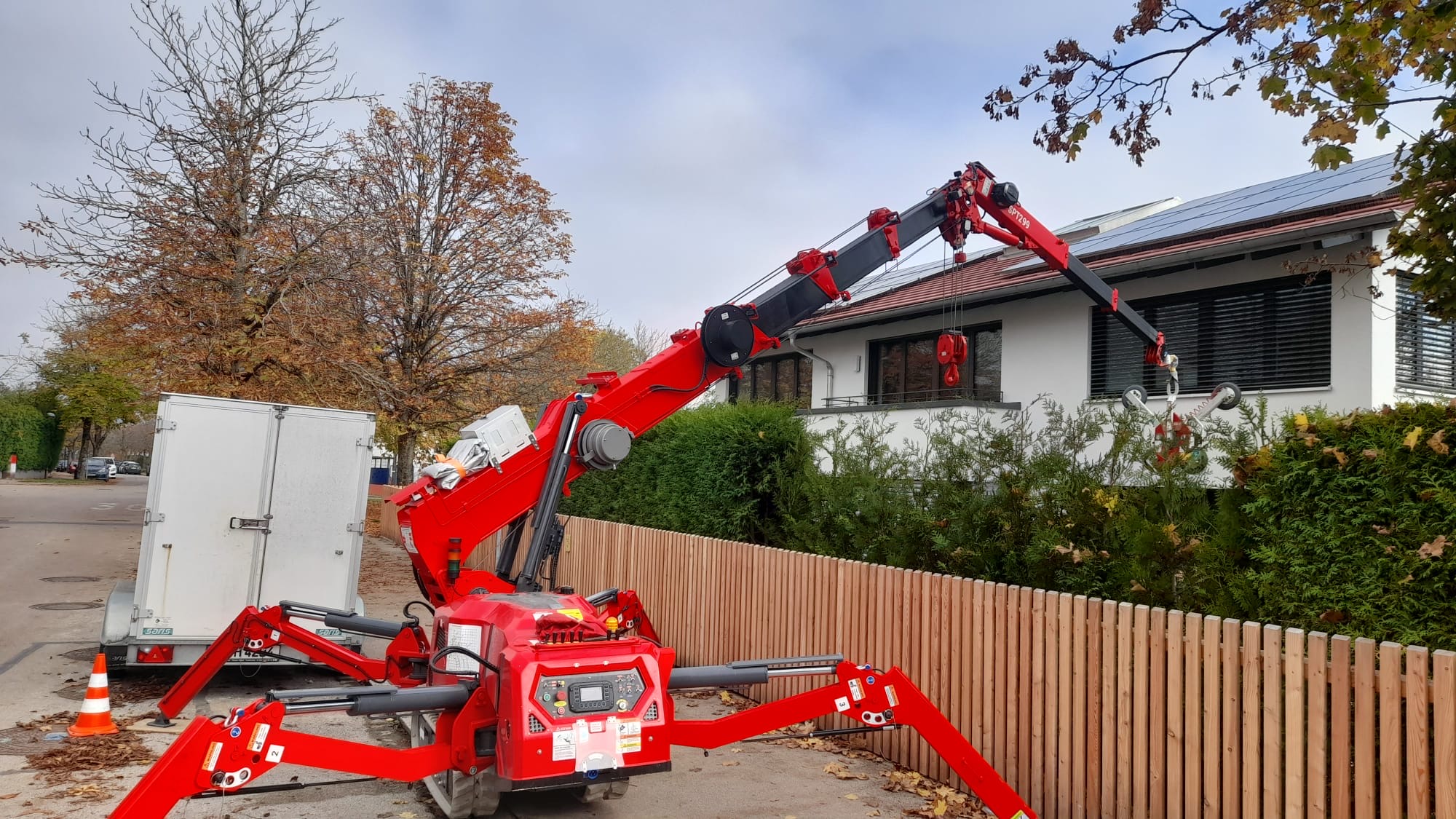 - Kann er auf unebenem Boden arbeiten? Uplifter Minikrane sind sogenannte Spinnenkrane und haben in der Höhe und Breite verstellbare Kranbeine, um jegliche Unebenheiten im Gelände problemlos ausgleichen zu können.