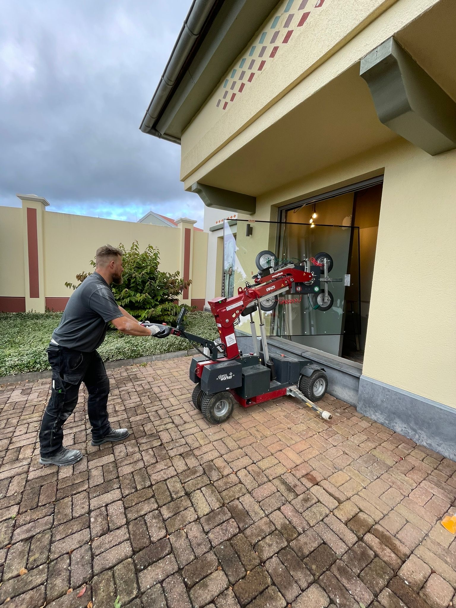 Glassworker GW425 bei der Fenstermontage mit Vakuumtechnik