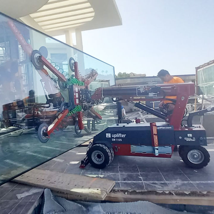 - Erfahrener Bediener: übernahm das Heben, Positionieren und Einpassen der Glasfassade – effizient und sicher.