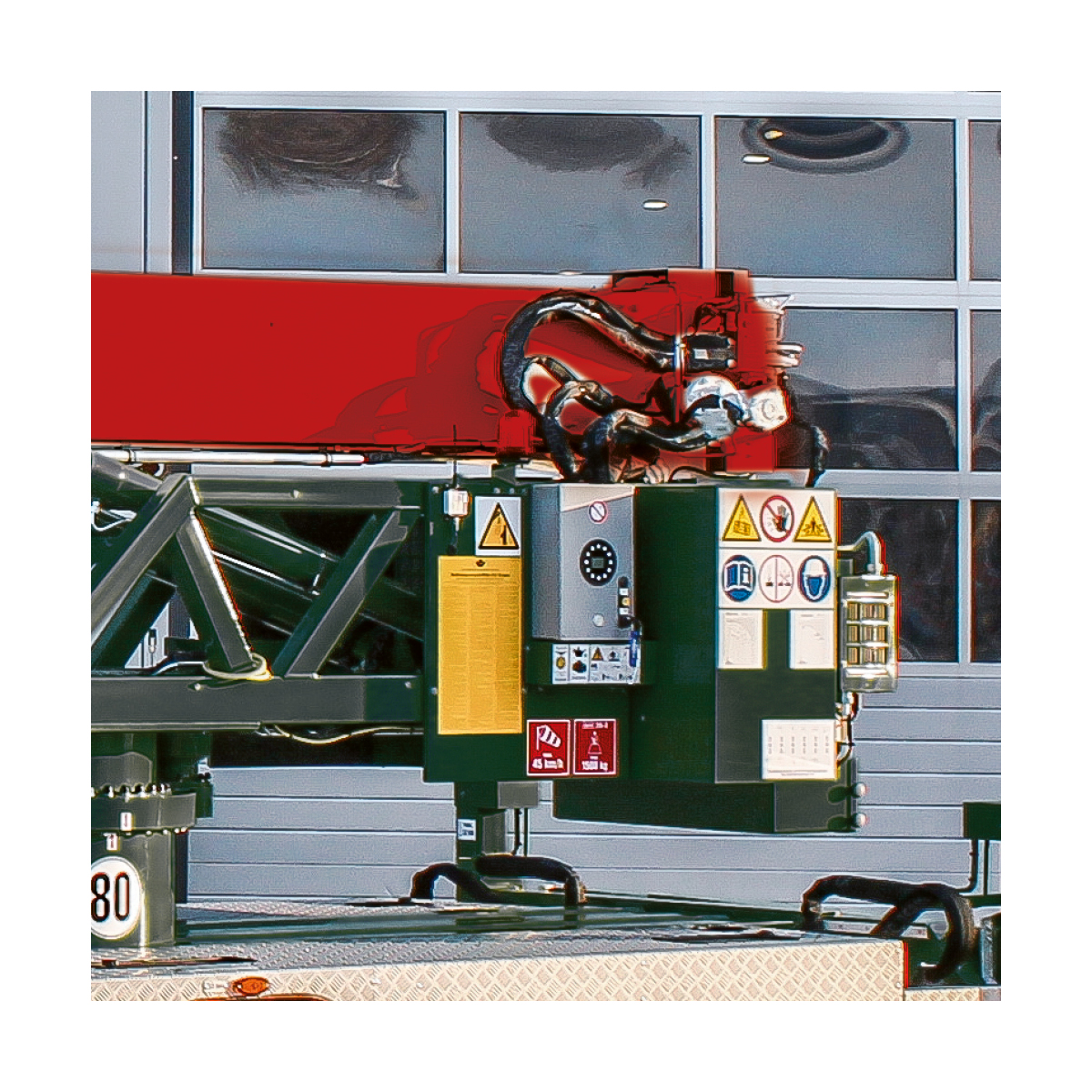 Mit dem integrierten SPS-Sicherheitssystem ist der Anhängerkran auch bei komplexen Einsätzen rundum geschützt. In Verbindung mit der präzisen Funkfernsteuerung behalten Sie stets die volle Kontrolle – sogar aus sicherer Entfernung.