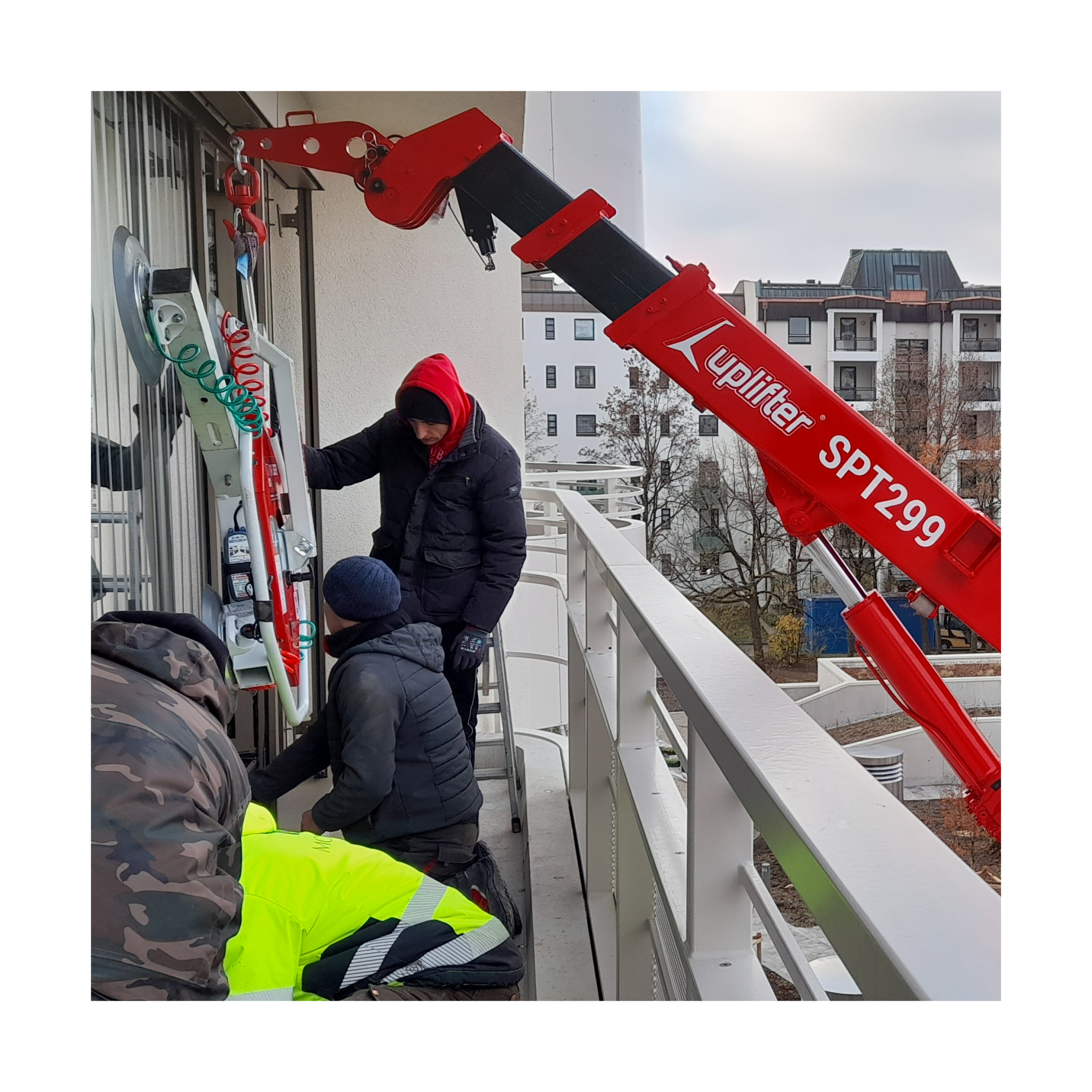 Ich miete häufig bei Uplifter einen Minikran mit Glassauger, meistens ohne Bediener, weil meine Leute sich schnell mit der Bedienung der Geräte vertraut gemacht haben.