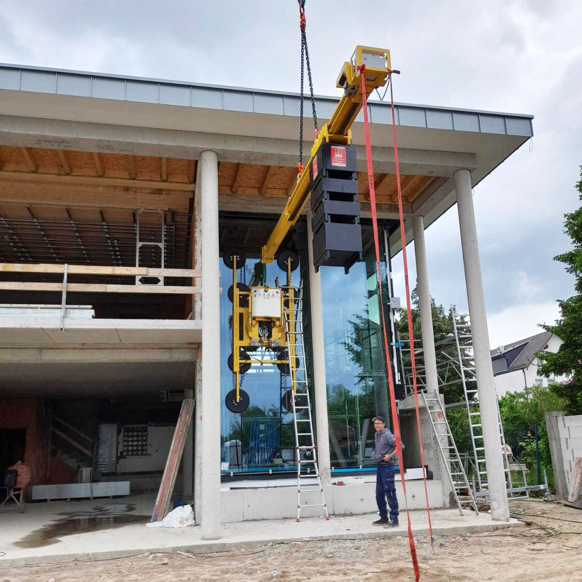 700 Kilogramm und über 7 Meter Länge – Glasscheiben und Fensterelemente im XXL-Format liegen im Trend, so auch bei diesem Einsatz in Hessen. Die Anforderungen an Geräte und Monteure sind hoch. Eine schnelle und einfache Montage gelingt mit dem Überhangsauger DSMH2 1200: er hebt Lasten bis 1.200 kg, völlig egal ob vertikal oder horizontal.