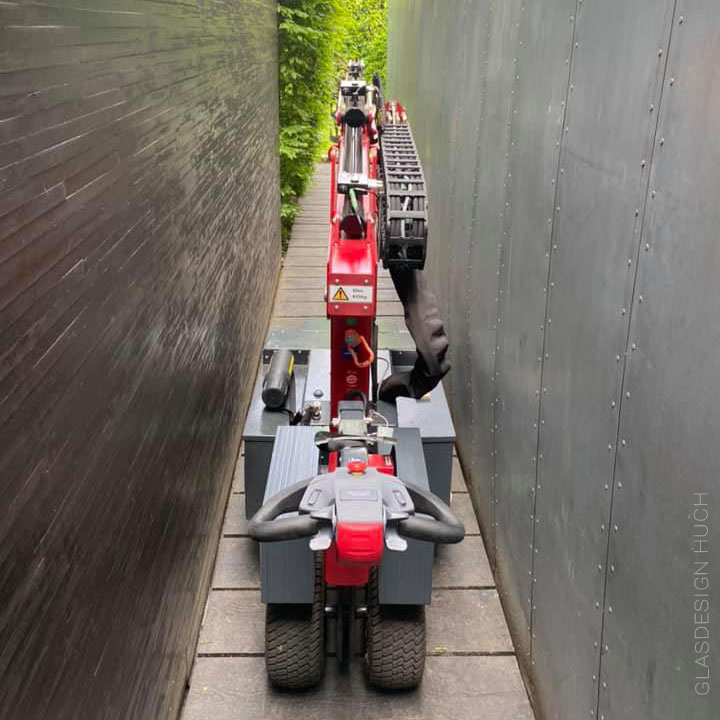 Die Qualität von Uplifter Verglasungskranen spricht für sich. Vielseitig, präzise und dank extrem schlanken Fahrgestell, passen diese Glasroboter auch durch engste Wege und Pfade. Ausgestattet mit Outdoor-Reifen sind kleine Unebenheiten einfach zu passieren. Besonders eng ging es bei diesem Einsatz für das Team von Glasdesign Huch zu. Aber für ein Glashebegerät von Uplifter sind selbst diese Anforderungen auf der Baustelle mühelos zu bewältigen. Glasfachhbetriebe vertrauen bereits seit Jahren auf die revolutionäre Technik und das Know-how von Uplifter. Sie suchen nach einer zuverlässigen und effizienten Methode zum Einbau von Fenstern? Dann ist unser Fenstermontagekran genau das Richtige für Sie! Mit seinem leistungsstarken Hebemechanismus und seiner robusten Konstruktion ist unser Kran perfekt für den sicheren und schnellen Einbau von Fenstern aller Formen und Größen geeignet. Egal, ob Sie ein professioneller Bauunternehmer oder ein Heimwerker sind, unser Glasmontagekran zum Mieten ist die perfekte Lösung für Ihr nächstes Projekt. Mit seinem benutzerfreundlichen Design und seiner außergewöhnlichen Leistung wird unser Lift für den Glaseinbau Ihre Erwartungen mit Sicherheit übertreffen. Warum also warten? Mieten Sie noch heute unseren Fenstermontagekran und erleben Sie den Unterschied selbst!