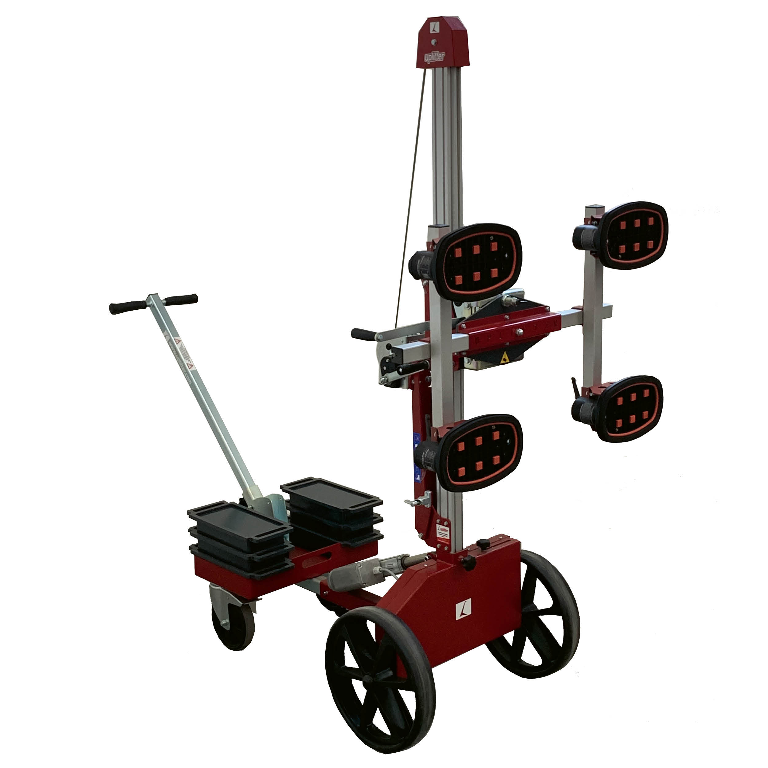 Das Fliesenmontagegerät UPT250 ist ein wendiges Fliesen-Handhabungsgerät für großformatige Keramik- und Natursteinfliesen auf der Baustelle. Mit dem vielseitigen Montagegerät ist der Transport von XXL Fliesen oder Wandelementen ein Kinderspiel. Durch das Schwenken ist selbst der Transport durch Türen kein Problem. Mit dem UPT250 können Lasten bis zu 180 kg (ohne Kippeinheit sogar 250 kg) gehoben, gekippt und gesenkt werden und ist als Transporthelfer nicht nur bei Fliesenlegern beliebt. Diese Verlegemaschine mit Einmannbedienung bietet eine verlässliche, effiziente und sichere Methode, glattes, nicht poröses Material jeglicher Art, darunter Glas, Naturstein, Keramik, Plastik, Schiefer, Bretter oder Laminat zu händeln. Dieser Hebelift ist ideal für den Transport durch Türen und für die Verlegung in kleinen, beengten Bereichen. Der Mast lässt sich um 90° schwenken und die Saugeinheit mit vier integrierten elektrischen Saugtellern lässt sich um 360° drehen. Die rutschsicheren Haltegriffe des Hebelifts sind in der Höhe und Länge verstellbar und mit den Vollgummi-Reifen (ø 400 mm) lässt sich auch unwegsames Gelände sicher befahren. Das Fliesenmontagegerät UPT250 lässt sich unkompliziert zerlegen und kann schnell von einem Stockwerk ins andere transportiert werden. Einfacher Transport und Montage durch eine Person garantiert! Das XXL Fliesen- und Natursteinhebegerät mit Einmannbedienung schont Kräfte bei Transport und Montage von mittleren Lasten. Der UPT250 ist ein sehr vielseitig nutzbares Großformat Fliesen und Naturstein aus der Uplifter Produktionsstätte.
