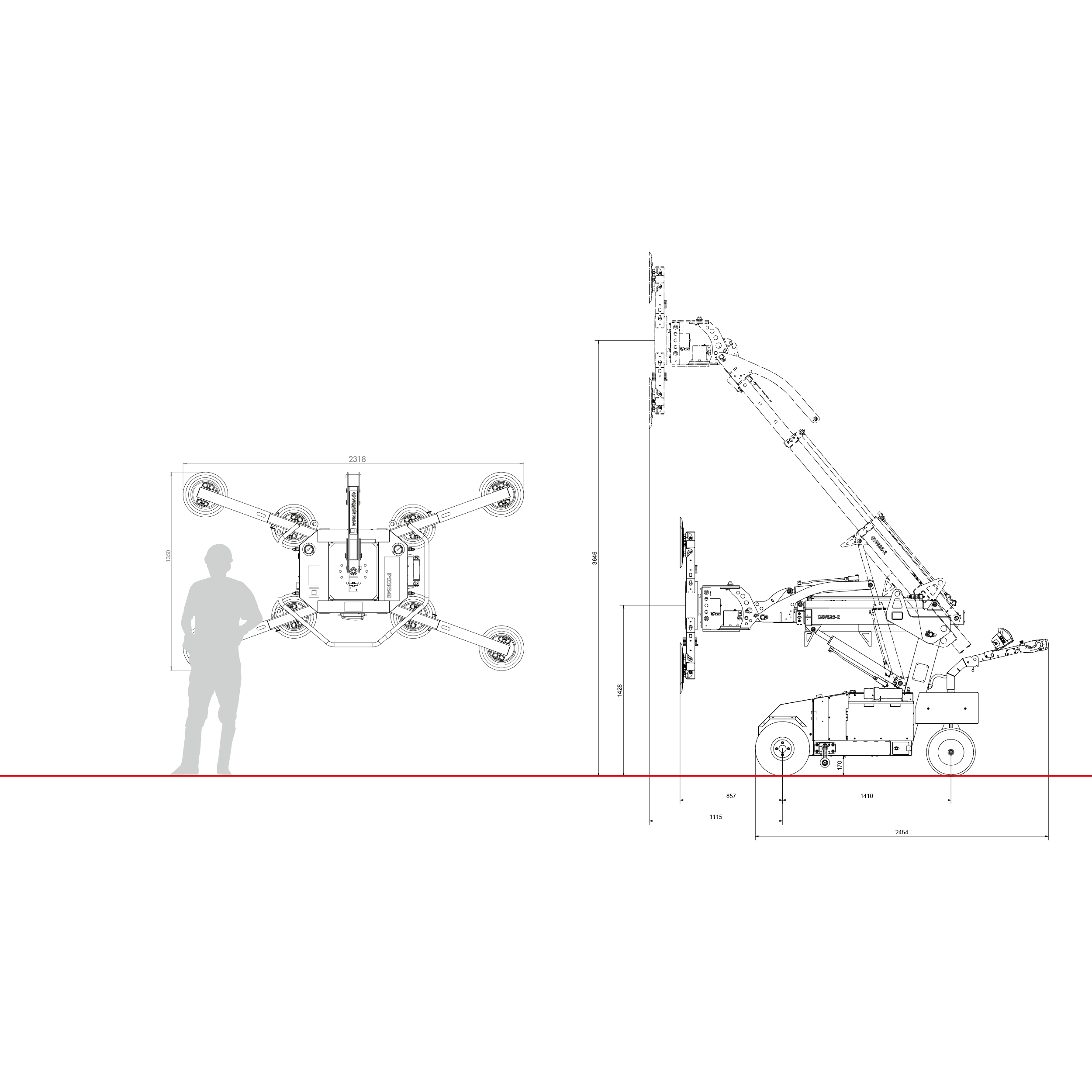 Mit dem GW600 PRO erhalten Sie eine innovative Lösung für die Glasmontage, die mit einem Manipulator und Vakuumsauger ausgestattet ist. Dieses hochwertige Produkt wurde speziell entwickelt, um Ihnen bei der sicheren und effizienten Glasmontage zu helfen.