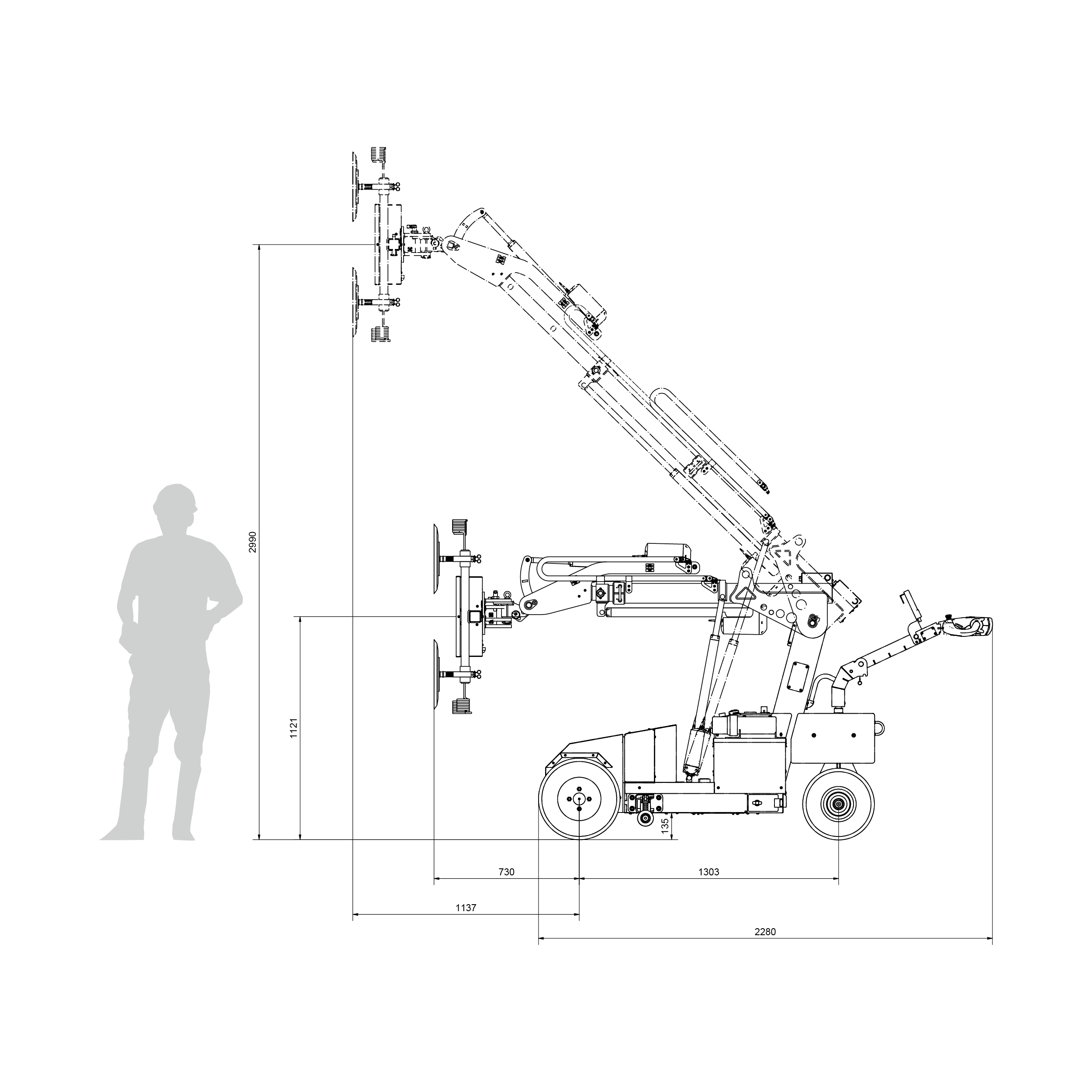 Arbeitshöhe: 2,990 m Mitte Vakuumkreuz