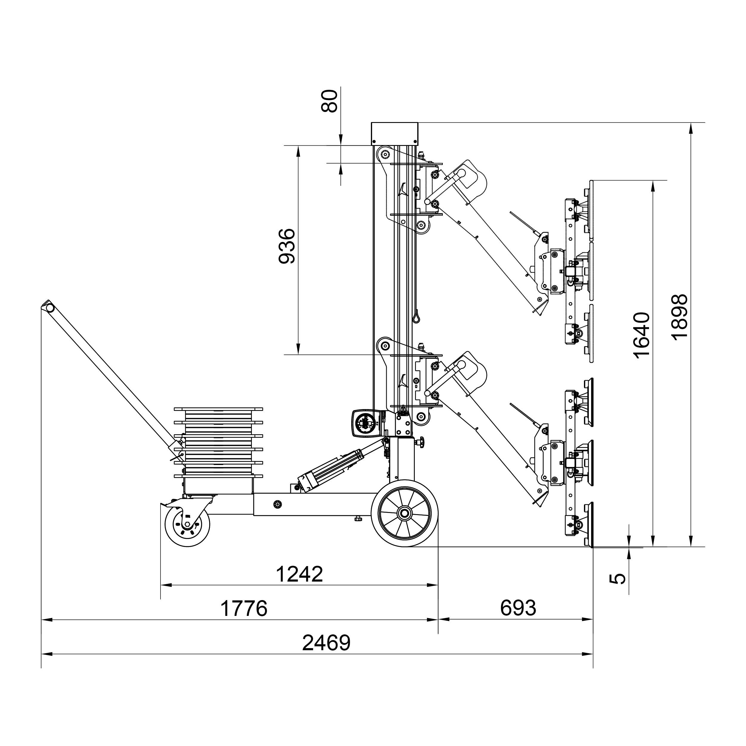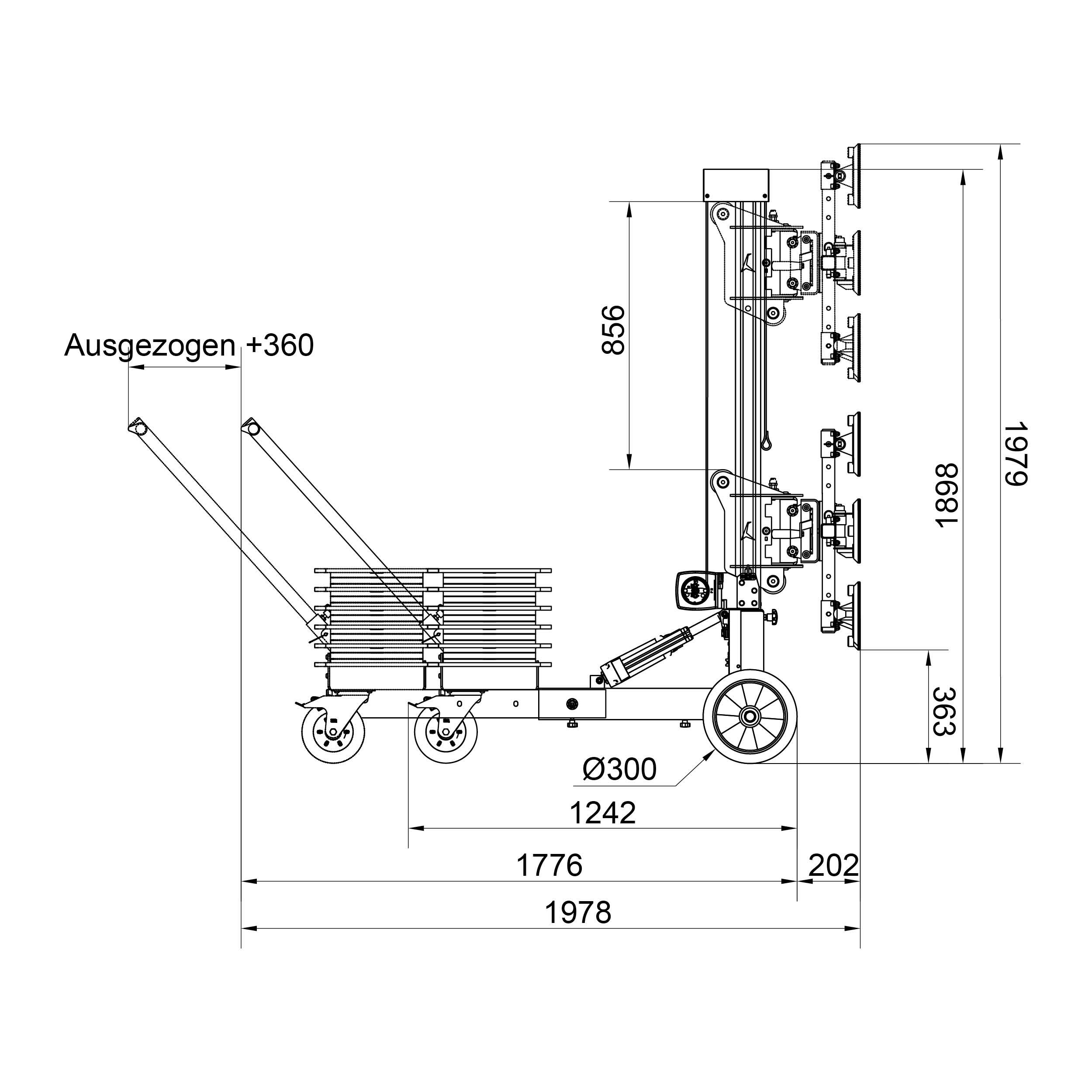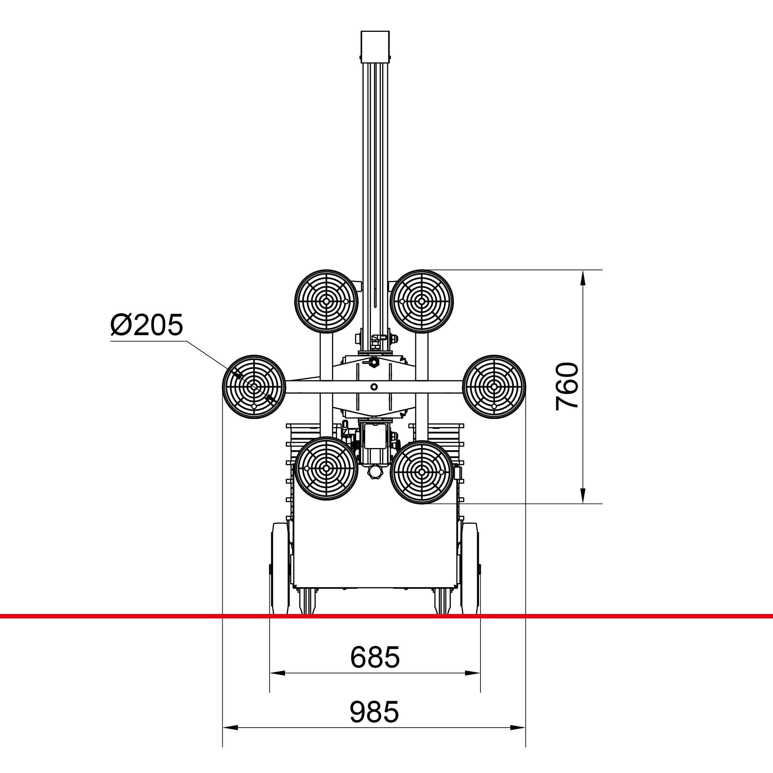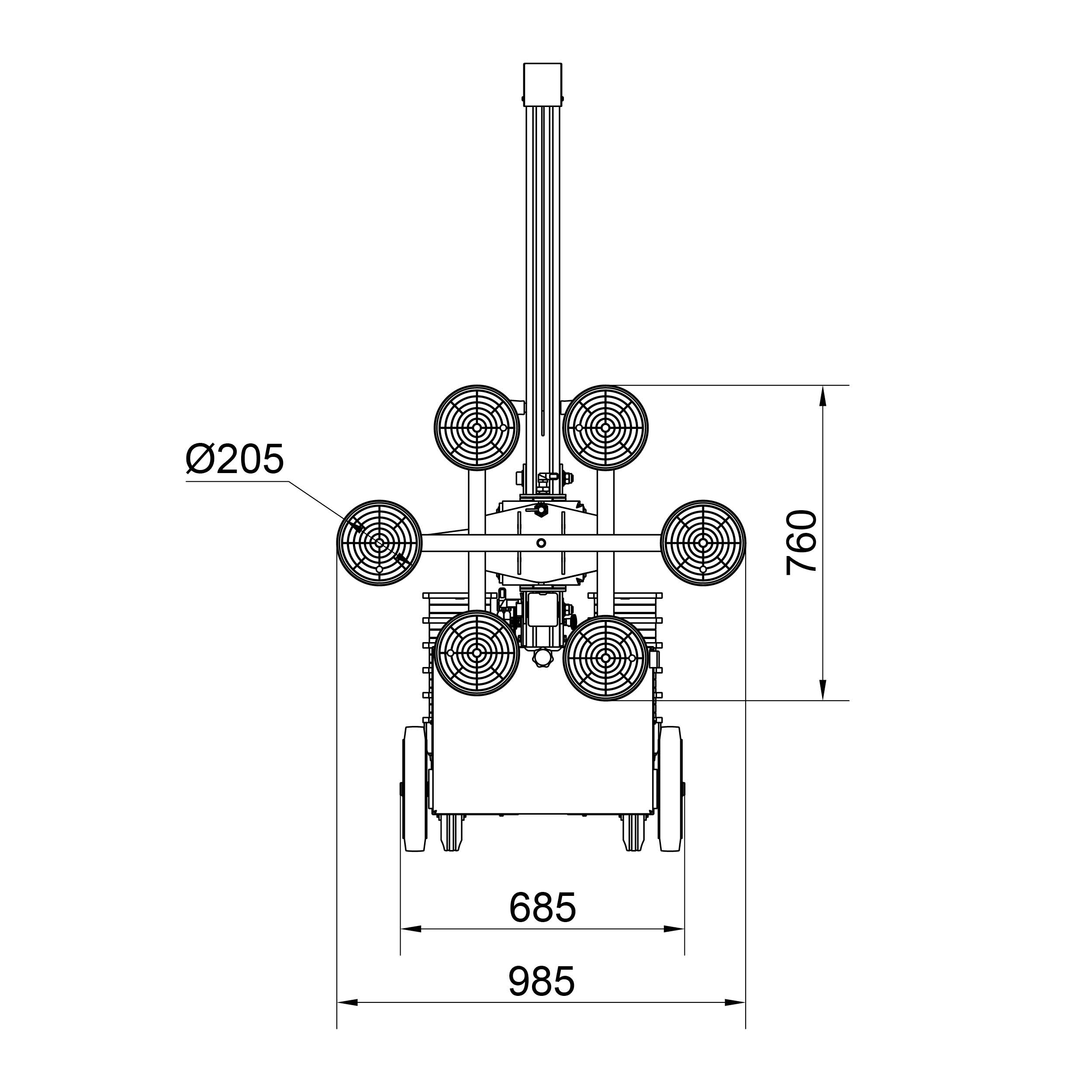 - Gesamtbreite: 685 mm (ohne Vakuumsystem)