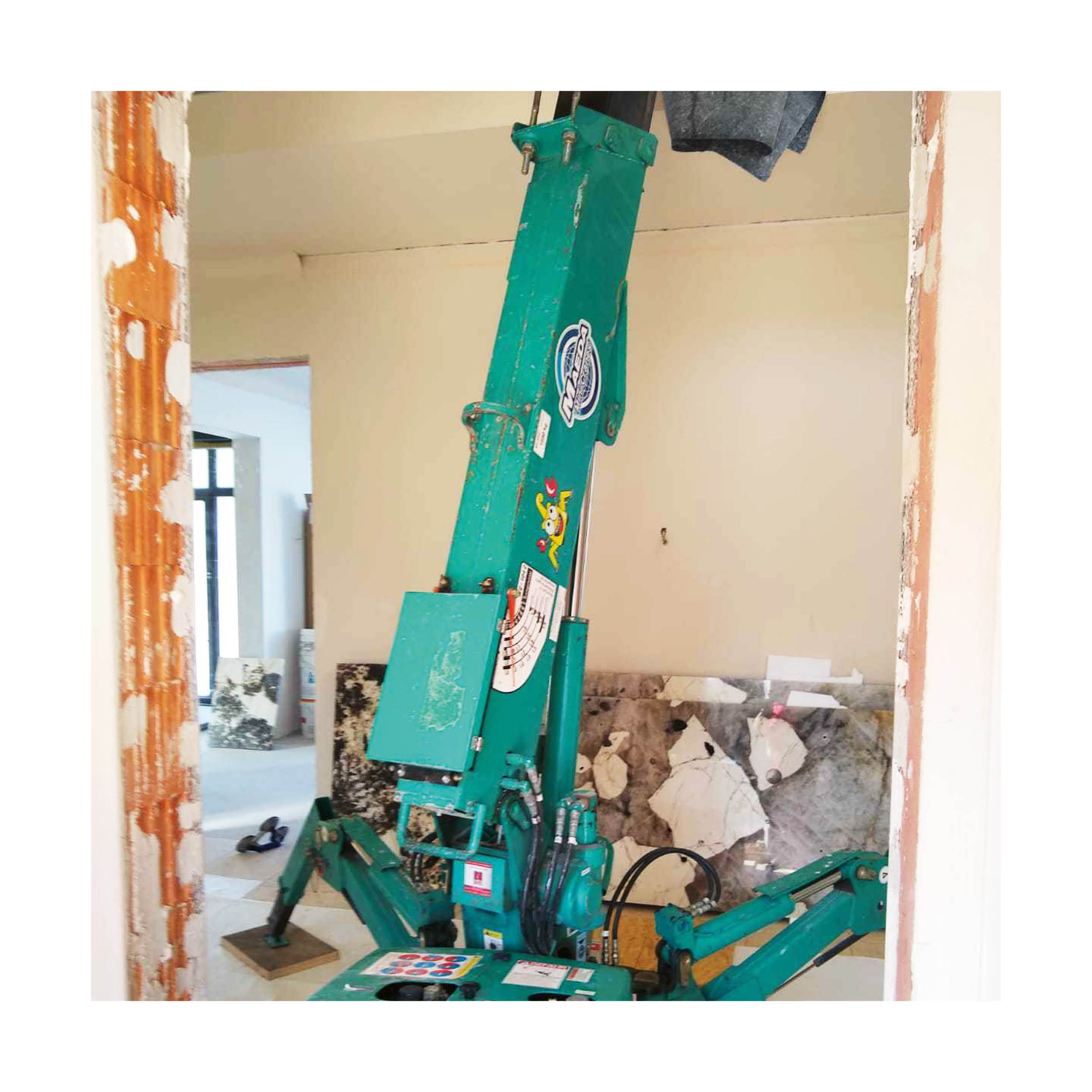 Die Kombination aus Vakuumsauger und Minikran ist eine perfekte Symbiose aus Kraft und Effizienz auf kleinstem Raum.