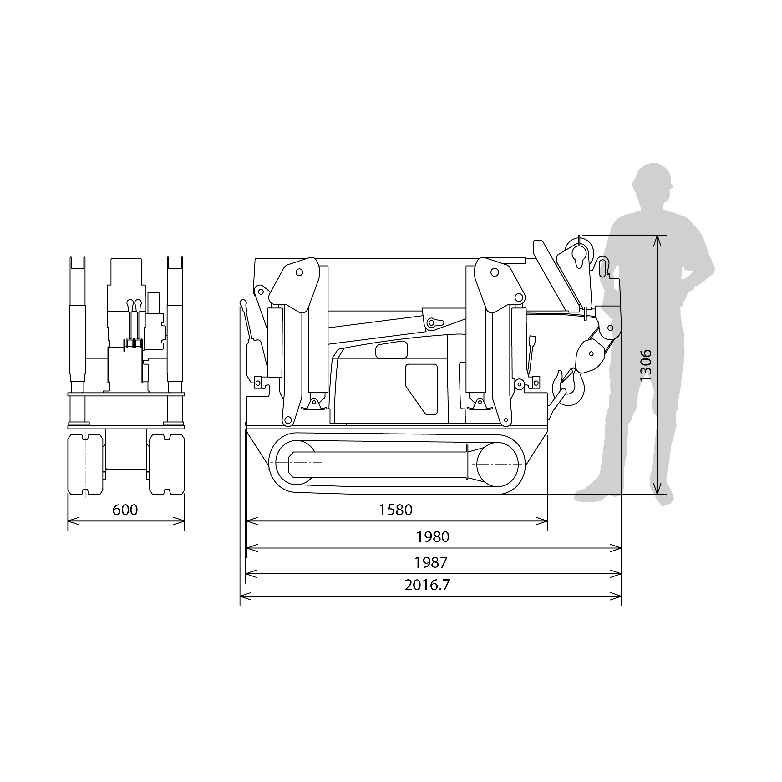 - L/B/H 2.160 mm x 600 mm x 1.305 mm