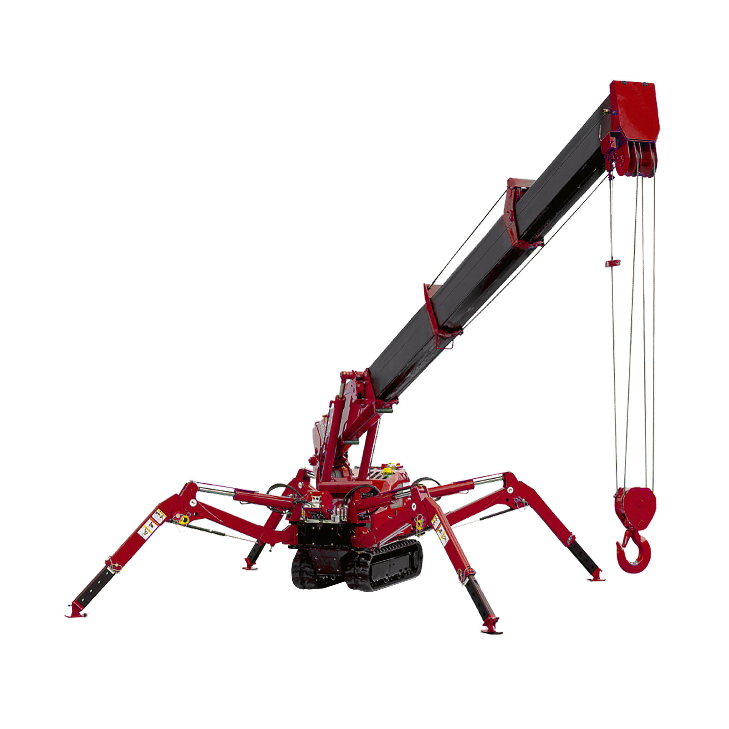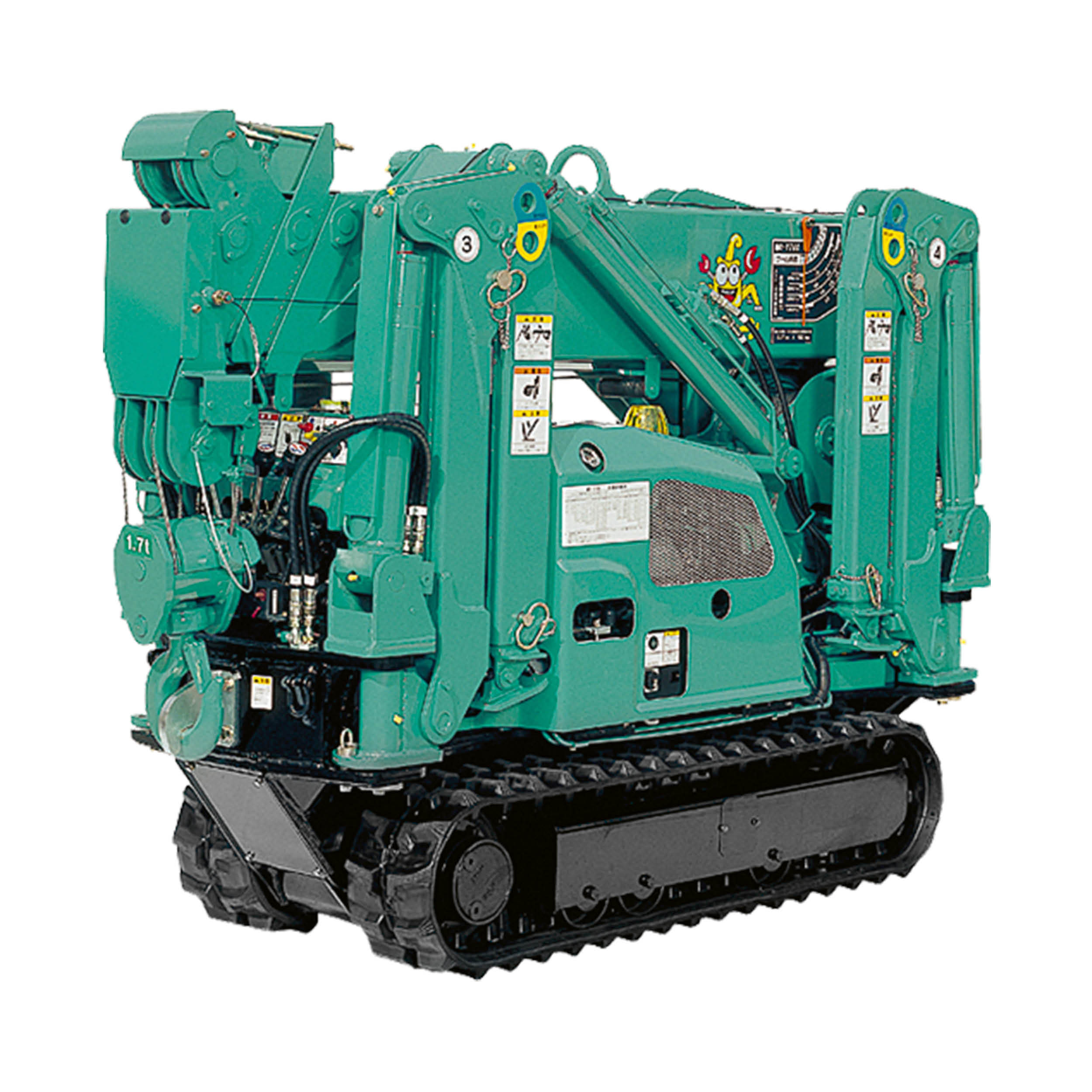 Der MAEDA MC174 ist das Maß aller Minikrane. Die mit 590 mm äußerst schmale Bauweise kombiniert mit einer Tragkraft von 1.720 kg ist unerreicht. So passt dieser Kran problemlos durch jede Standard-Türöffnung und lässt sich in Bereichen einsetzen, die bisher für normale Krane nicht möglich waren. Dank Stützfüßen und Raupenketten sind Kranarbeiten auf unebenen und schlammigen Baustellen möglich. Seinem Namen macht dieser Minikran alle Ehre: er wird nämlich aufgrund seines Aussehens oft als Spinnenkran oder Spider Crane bezeichnet.