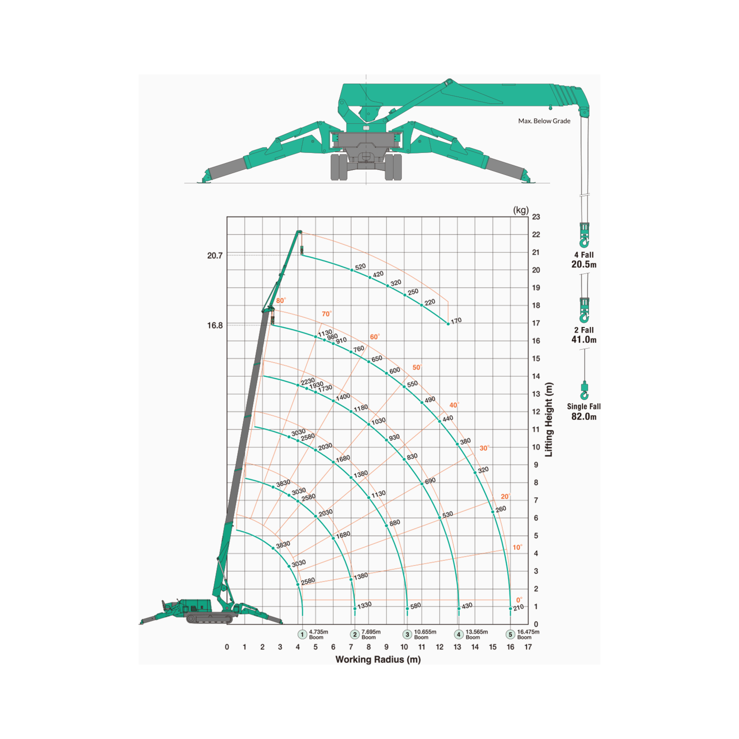 - (20,7 m inklusive Fly Jib optional)