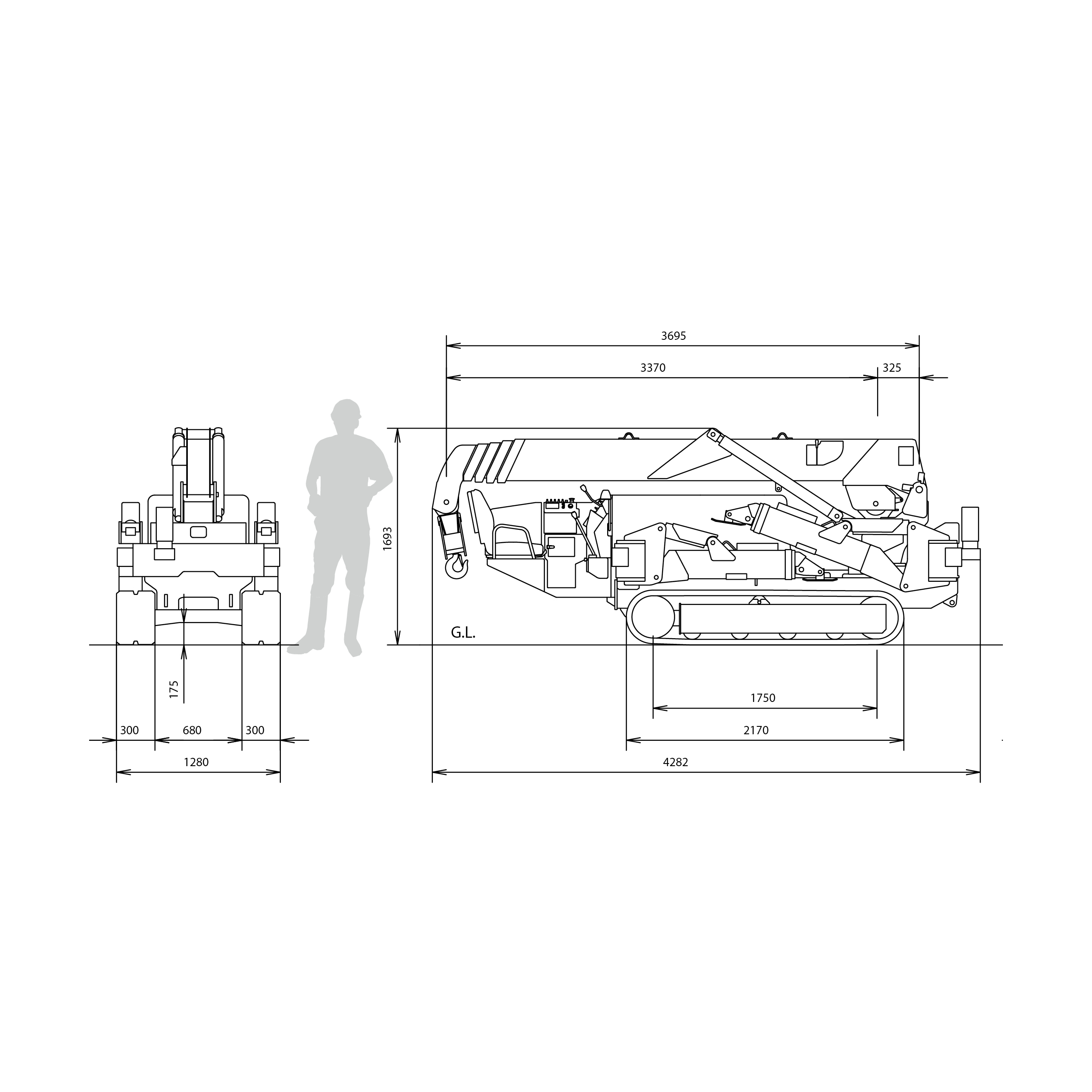 Kabelfernbedienung mit integrierter digitaler Lastanzeige, Betriebsstundenzähler, 2/4-fach Hakenflasche , schwarze Gummiketten, Überdrehungsschutz, hydraulische Sicherheitsventile, Nivellierungsanzeige, Kippalarm, Not-Ausschalter, Lastmomentbegrenzer, Betriebswarnleuchte, Datenlogger, Arretierung der Stützfüße, Transportsperrhebel