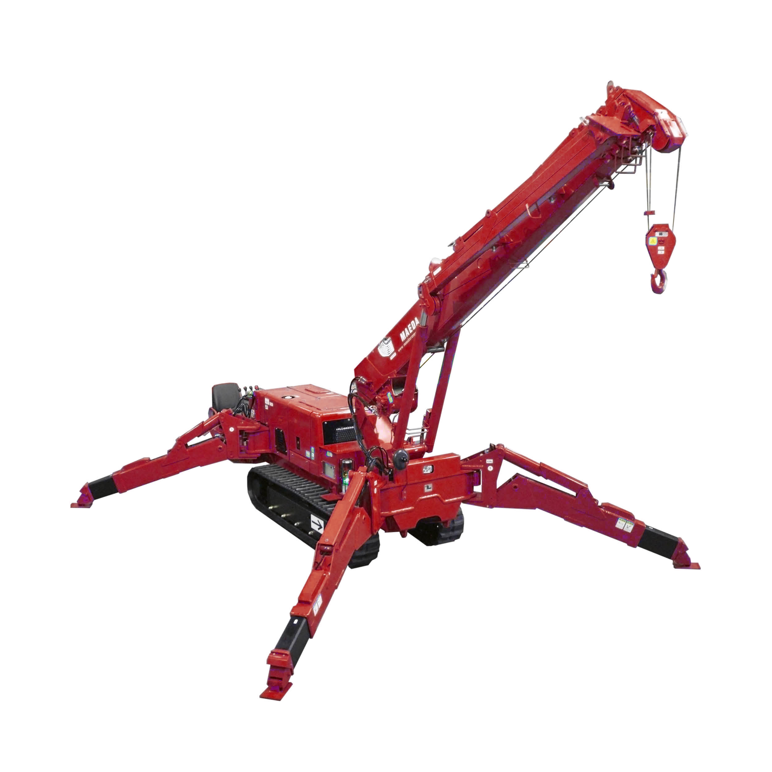 Optional sind für alle MAEDA Krane weiße Gummiketten erhältlich. Diese minimieren den Abrieb am Boden.