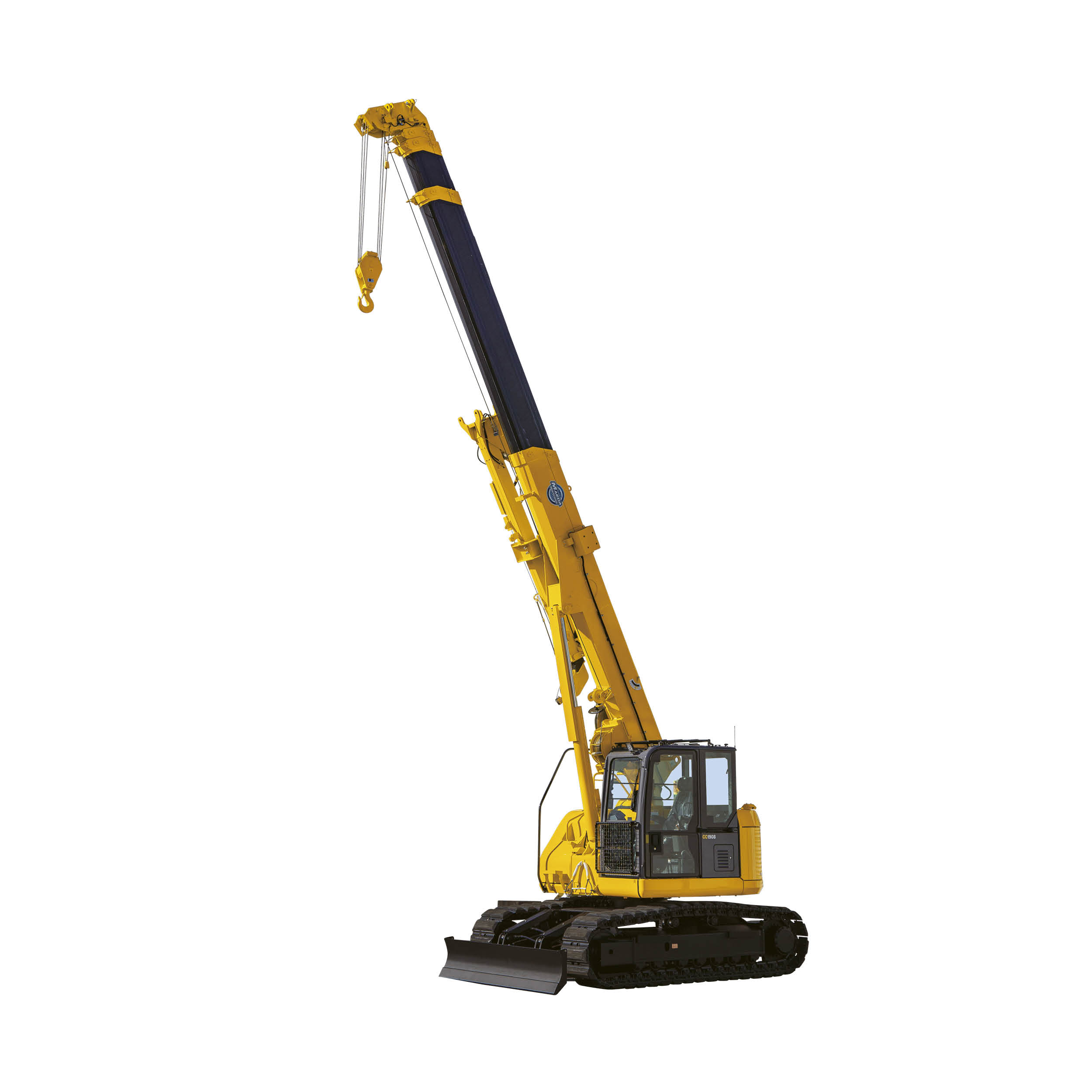 Das Modell CC1908 verfügt über zahlreiche marktführenden Eigenschaften, darunter eine massive Tragfähigkeit von 8,1 t, eine Hubhöhe von 20,1 m und eine Pick-and-Carry-Kapazität von 3,5 t. Zu den Top-Eigenschaften dieses Modells gehören Lastmomentbegrenzer, Stahlraupen (optional mit Gummipads), Überdrehungsschutz, hydraulische Sicherheitsventile, Nivellierungsanzeige, Not-Ausschalter, LED-Betriebswarnleuchte, Klimaanlage, 6-fach-/4-fach/2-fach-Hakenflasche, Arbeitsscheinwerfer, Betriebsstundenzähler, Kippalarm, Sicherheitsverriegelung, Rückfahrkamera, Frontkamera, 10,4-Zoll-Touchscreen-Monitor und Datenlogger. Ein Dachfenster mit weitem Blick, Sonnenschutz und Visier gehören hier ebenfalls zum Standard. Dieser Minikran ist auf keine Ausleger angewiesen, dies ermöglicht Arbeiten auf einer extrem geringen Stellfläche. Der Schwenkradius ist im Vergleich zu anderen Modellen sehr gering, was Arbeiten in eingeschränkten Bereichen erlaubt. Der Dieselmotor ist besonders sparsam.