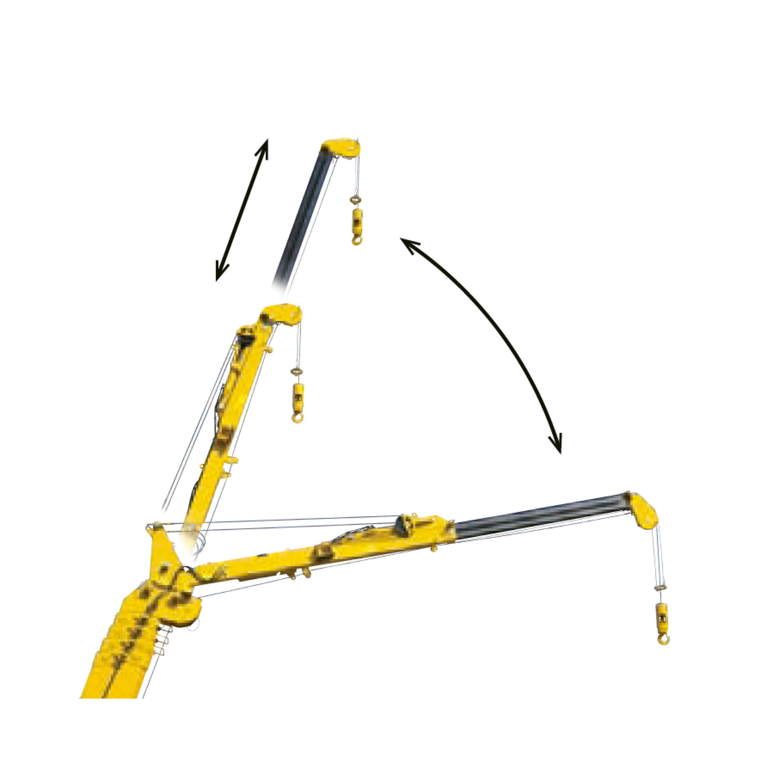 Überdrehungsschutz, hydraulische Sicherheitsventile, Stahlketten, Nivellierungsanzeige, LED-Betriebswarnleuchte, Klimaanlage, Arbeitsscheinwerfer, Sicherheitsverriegelung, Kippalarm, Rück-/Frontkamera, Not-Ausschalter, Lastmomentbegrenzer, Betriebsstundenzähler, Datenlogger, 2/4/6-fach-Hakenflasche