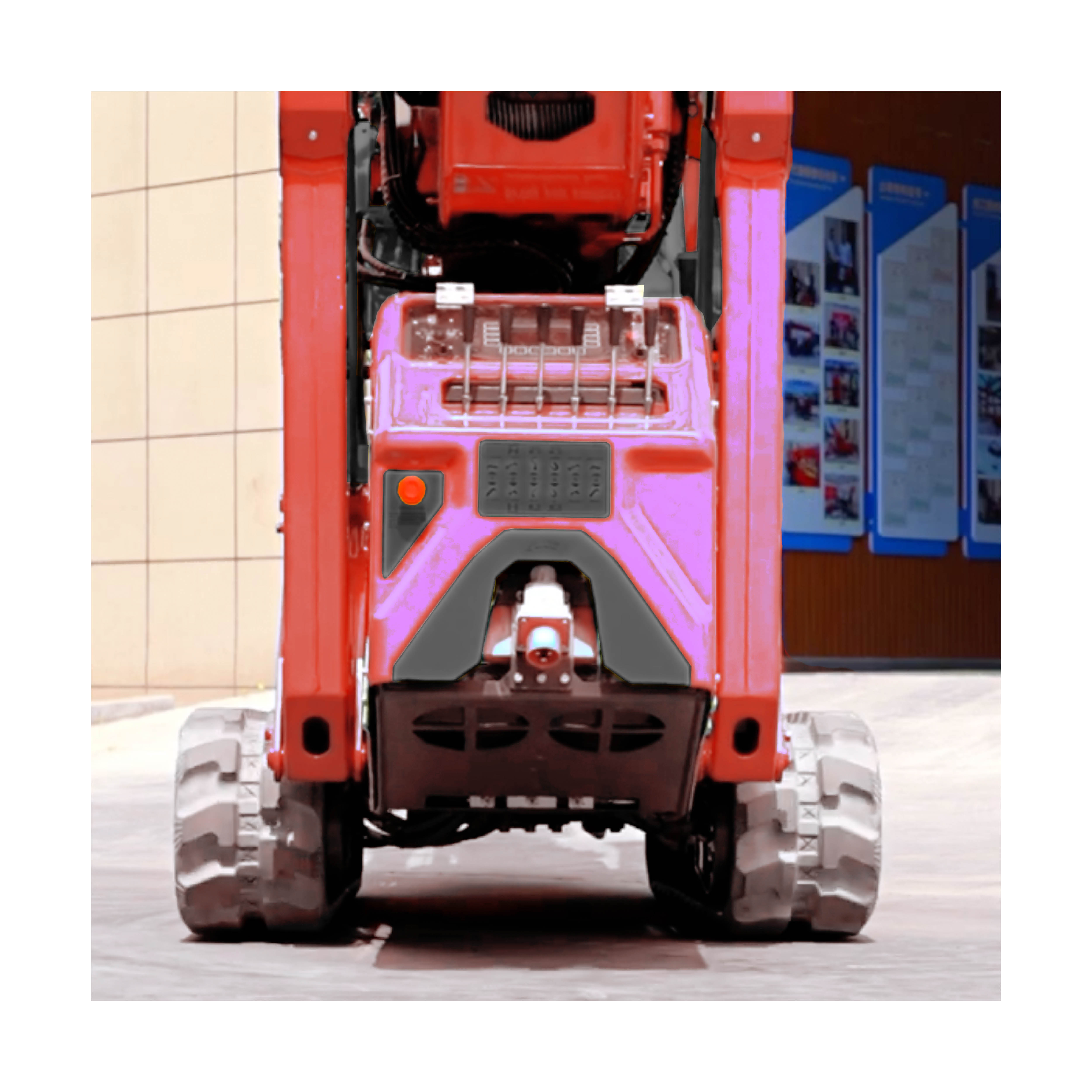 In der Breite verstellbares Raupenfahrwerk, Funkfernbedienung mit großem LCD-Farbdisplay, Direktsteuerung am Kran mit zusätzlichem LCD-Farbdisplay, verstellbare Stützfüße mit automatischer Nivellierung, Betriebsstundenzähler, 2/4-fach-Hakenflasche inkl. Halterung und automatisch klemmbarem Haken, weiße Gummiketten, Abdeckhaube, Betriebswarnleuchte.