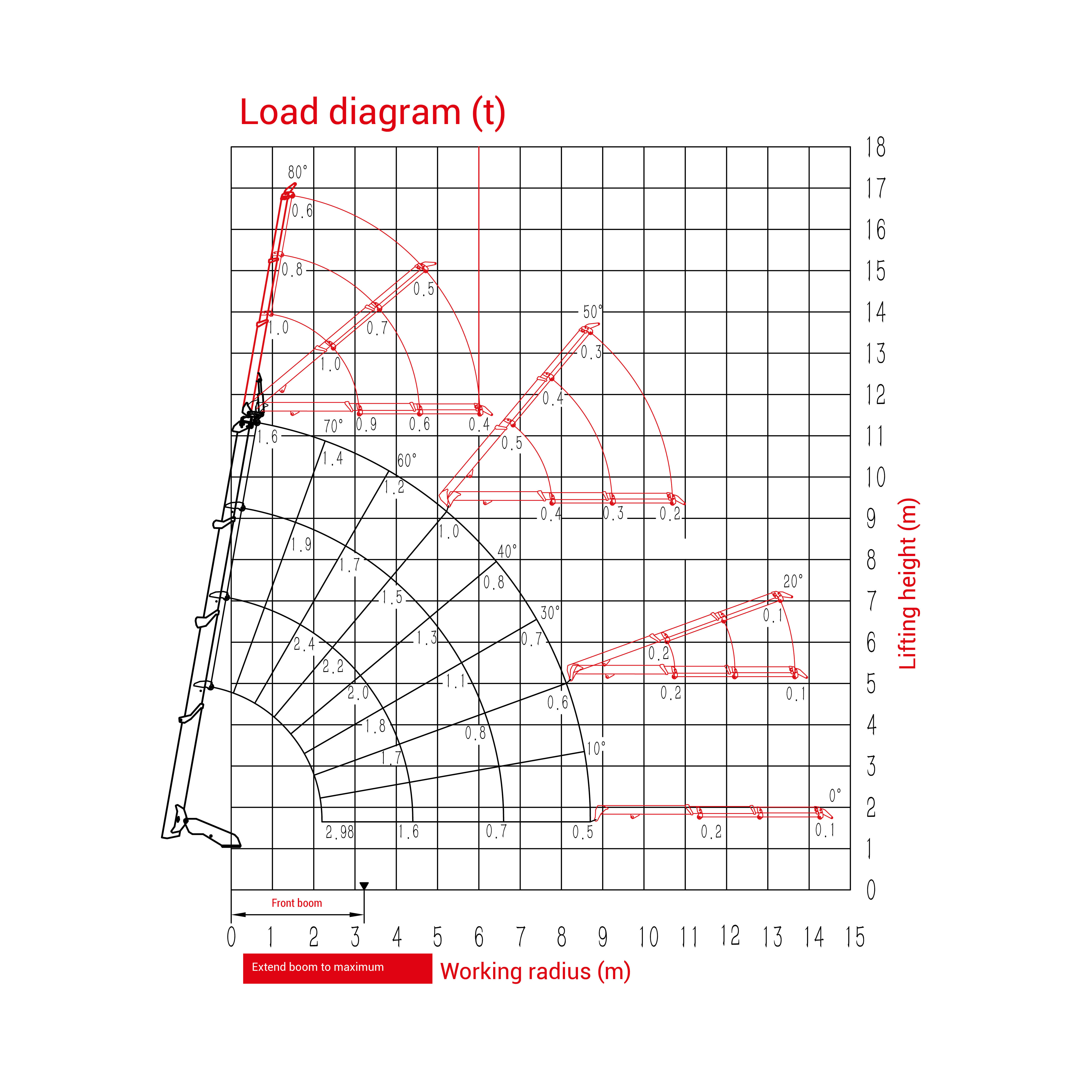 - Hakenhöhe max. 11,20 m (17,0 m inkl. FlyJib)